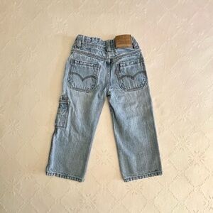 LEVIS DENIM CARPENTER JEANS, SIZE 3T. GARANIMALS T-SHIRT, SIZE 3T.