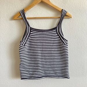 LEVI'S Dark Grey White Striped Crochet Knit Tank Top Womens Small