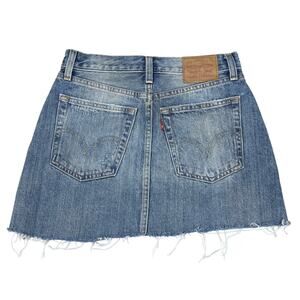 LEVI'S Distressed Cut-Off Denim Mini Skirt Sz 25 Blue Yellow Wash
