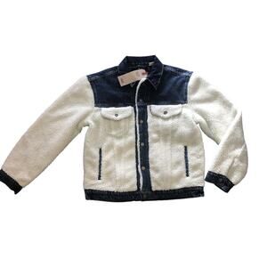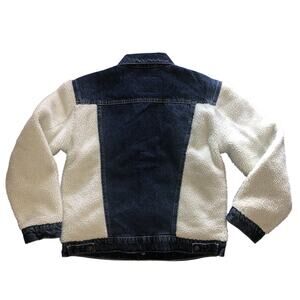 LEVI'S EX-BOYFRIEND Pieced Sherpa Denim Trucker Jacket "all goes wool" S NWT