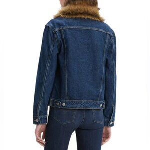 LEVI’S Ex-boyfriend Trucker Denim Jacket Faux Fur Collar Quilted Lining SMALL