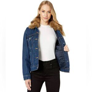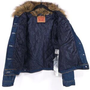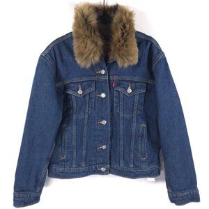 LEVI’S Ex-boyfriend Trucker Denim Jacket Faux Fur Collar Quilted Lining SMALL