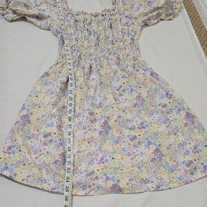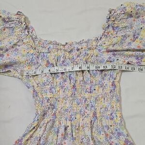 Charming floral dress with puff sleeves. Features a smocked bodice. Perfect for a casual outing. Great pre-owned condition. please refer to photos for more details and measurements.