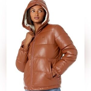 LEVI'S Faux Leather Puffer Jacket Sz XL Camel Brown