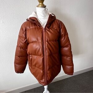 Levi's Faux Leather Puffer Jacket Sz XL Camel Brown