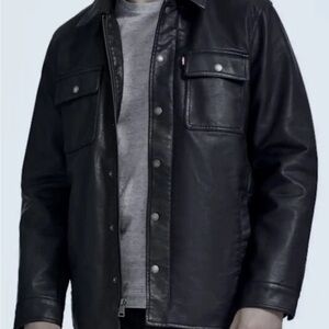 LEVIS Faux Leather Sherpa Lined Black Snap Zip Trucker Jacket NWT Mens Sz M