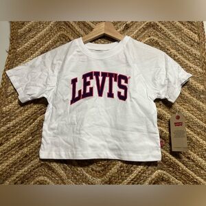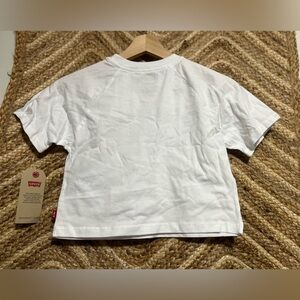 LEVIS Girls Cropped Boxy White Tee, Logo Design, Size 6, NWT