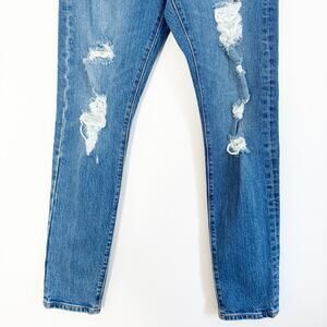 Intentional distressing with a button fly.