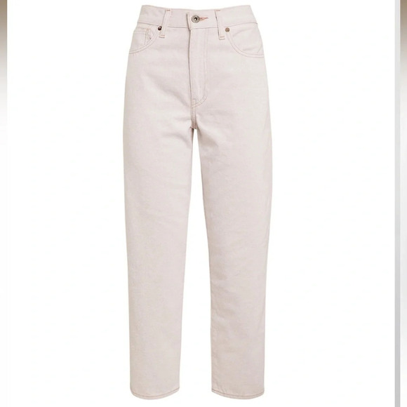 Artfully playing with proportions via a straight-leg cut and high-rise waist. Retro-inspired feel. My photos don’t do justice to the jeans. The color is a subtle pink and the texture of the whole jean is a distressing style without the typical cut off, you can’t see it but can feel it. Super cute and unique. The model in the photos has the same jeans.