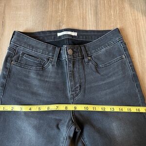These skinny jeans from Levi’s are a wardrobe must, featuring tummy, slimming technology to smooth and enhanced your shape. These jeans are a black faded wash in the color Bloom Black. These jeans are like new without tags and have never been worn.