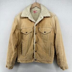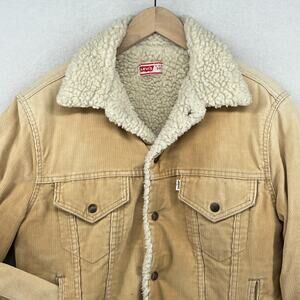 LEVIS Jacket Mens 38 Corduroy Sherpa Fleece Lined Trucker White Tab Cotton Beige