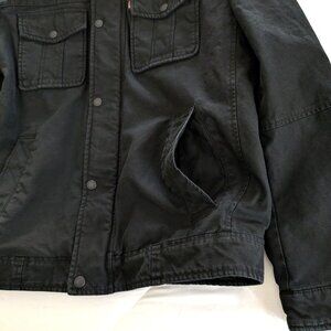 LEVIS Jacket Men's S Black Denim Trucker Mock Neck Snap Pockets Casual Biker