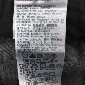 Made in China. 85% Cotton, 14% Polyester, 1% Elastane.