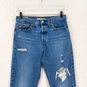 LEVIS Jeans Womens 28 Blue Wedge High Rise Slim Straight Distressed Medium Wash