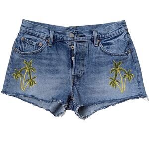 LEVI'S Levis Tropical Palm Tree Embroidered Button Fly cut off Jean Shorts 29