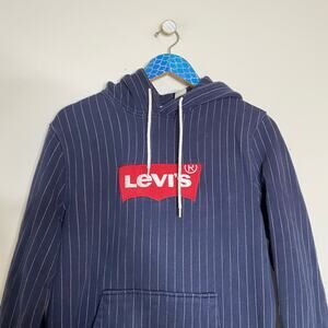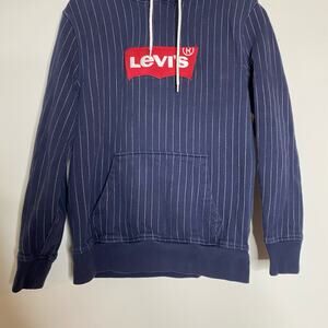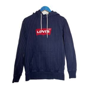 LEVI'S Logo Patch Navy Striped Drawstring Hoodie Sz Men's Small