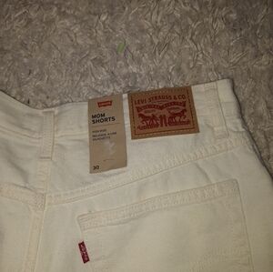 Levi's high rise mom shorts, relaxed a-line silhouette, zip closure