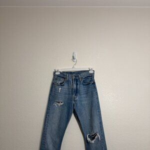 ☀️ LEVI'S Medium Wash 501 Skinny Jeans Size 27 Distressed Busted Knee Button Fly