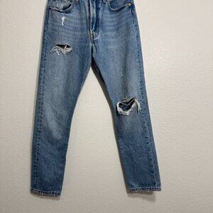 LEVI'S Medium Wash 501 Skinny Jeans Size 27 Distressed Busted Knee Button Fly