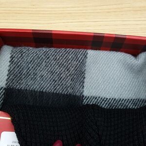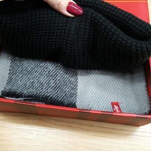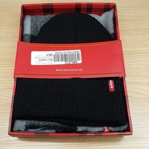 LEVI'S Mens Beanie Hat Plaid Scarf Set Black Gray Gift Set