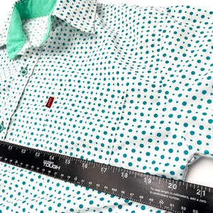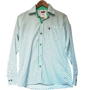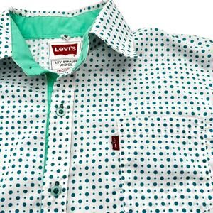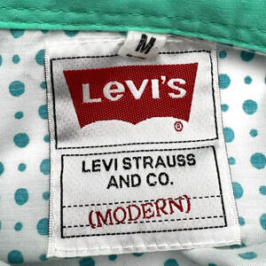 LEVI'S Mens Medium Modern Long Sleeve White Teal Polka Dot Button Up Dress Shirt
