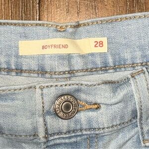• Style: boyfriend, mid or regular rise, light wash, stretchy, roll up leg, casual