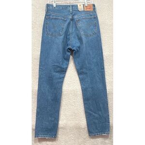 Crafted from 100% cotton denim fabric with a light wash, these jeans are the perfect addition to any wardrobe. The distressed detailing adds a touch of retro charm, while the solid blue color and classic fit make them a versatile choice for any theme. Whether you're headed to a festival, the USA, or just running errands in London, these Levi's 501 jeans are the perfect soundtrack to your style.