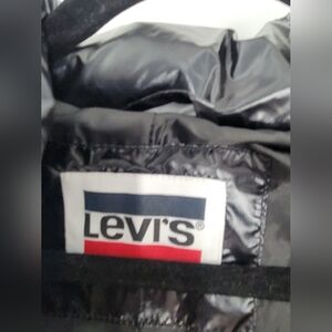 LEVIS Polished Quilted Megan Hooded Puffer Jacket Womens L Black Front Zip