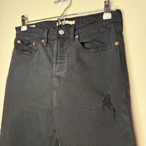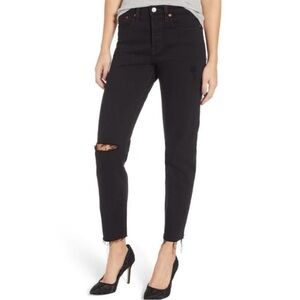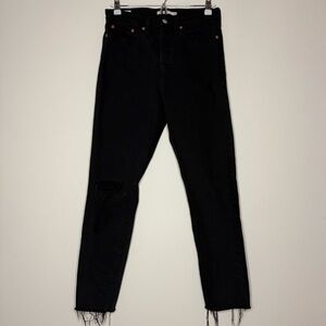 LEVI’S Premium Wedgie Distressed Raw Hem Black Jeans