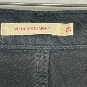 LEVIS Premium Wedgie Straight Jeans Womens Size 25 x 28 Black Button Fly Big E