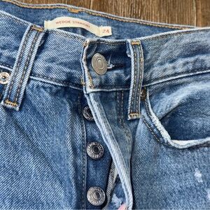 LEVI'S Premium Wedgie Straight Leg High Rise Blue Jeans Ankle distressed