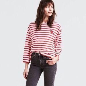LEVI’S ROSE EMBROIDERED STRIPE 3/4 SLEEVE RELAXED FIT SHIRT
