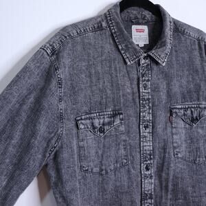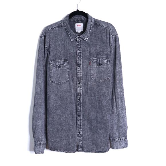 LEVI'S Relaxed Fit Denim Shirt Black Acid Wash Button Up Long Sleeve Men's XL