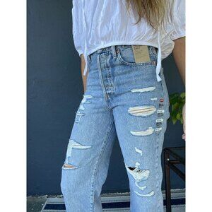 LEVI'S Ribcage High Rise Destructed Straight Jeans in Wash Haleys Comment US 28