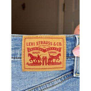 LEVI'S Ribcage Straight Ankle Jeans Womens 25x27 Blue Button Fly Denim Stretch
