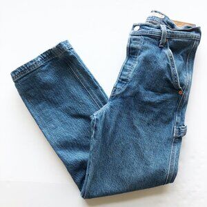 LEVI'S Ribcage Straight Cargo Carpenter Utility Button Blue Jeans Womens 26