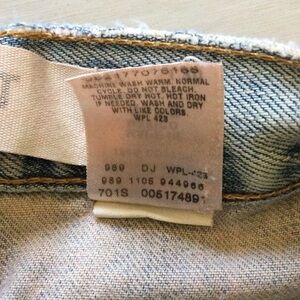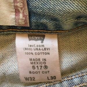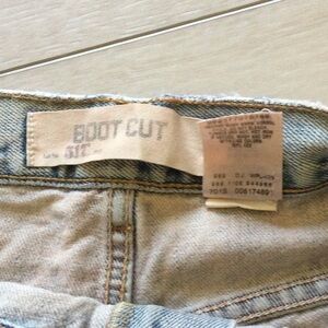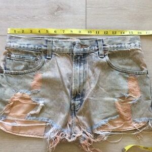 Levi’s 517 jeans made to shorts and dyed with a peachy color.