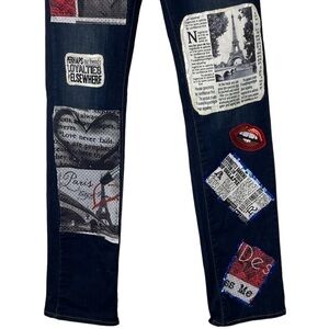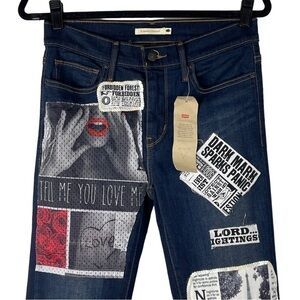 LEVI'S SLIMMING STRAIGHT HIGH RISE CUSTOMIZED HARRY POTTER PATCH DARK DENIM JEAN