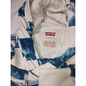 LEVI'S San Francisco CA: White/Blue Hoodie with Logo Pattern/Pouch Pocket-Kids M