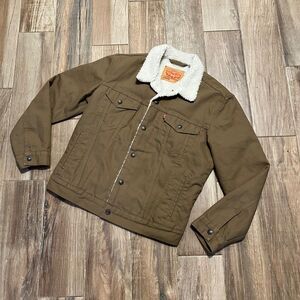 LEVIS Sherpa Brown Denim Trucker Jacket. Size Small
