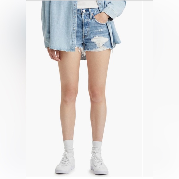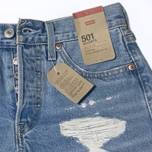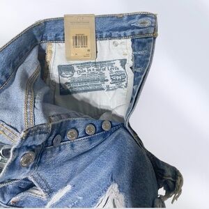 LEVI’S Shorts NWT 501 High Rise Ripped Button Fly In Quiet Riot Blue Size 24