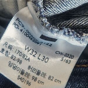 Jeans are 99% cotton. Pictures are of actual pair of jeans and is part of the description.