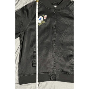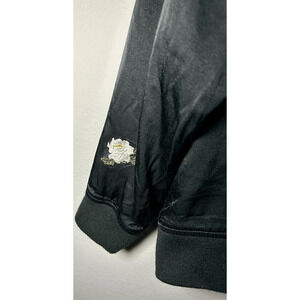 LEVI'S Strauss Black Satin Floral Embroidered Bomber Jacket Sz M