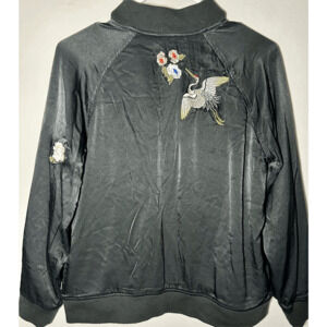 LEVI'S Strauss Black Satin Floral Embroidered Bomber Jacket Sz M.