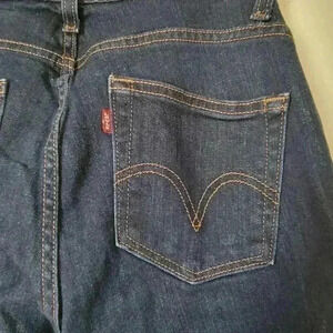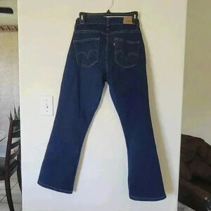 Levis Jeans high-low rise bootcut jean in great condition. Has one lipstick stain in the inside of jean. (see photos attached)