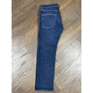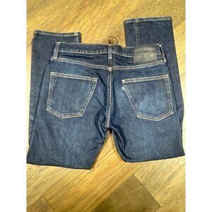 Original Levi 502 jeans with elastane for a bit of "give"; classic 5 pocket style; tapered leg; zip/button closure; size tag is 30/32. PLEASE NOTE: the inseam has been professionally altered and measures 27". Worn two or three times, they are in EXCELLENT condition.