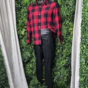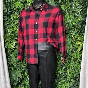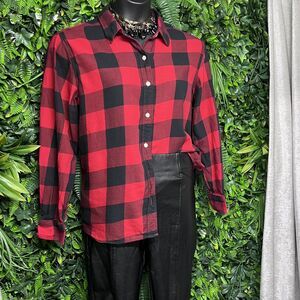 LEVIS Tops Women XL Red Buffalo Plaid Boyfriend Shirt Button Up Button Back 1954