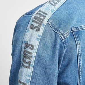 Levi's elevates a classic wardrobe staple to bring you the Track Coach Side Stripe Denim Trucker Jacket. This rad jacket has multiple pockets, a full-length button front, and a medium "Buzzer Beater" wash design with branded taping. The lightweight Levi's Track Coach's Trucker Jacket is ready for anything and is sure to be your GO TO jacket all year long.