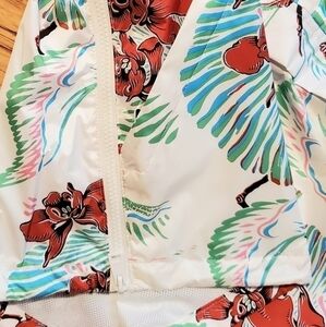 LEVI'S Tropical Hawaiian Floral Flower White Windbreaker Hooded Jacket Size L