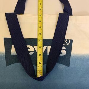 Stylish and durable, this Levis tote bag features a bold two-tone dip-dye design in cream and denim blue, with the classic Levis® batwing logo on the front. Made from sturdy canvas with wide navy handles and brass grommet accents, this bag is perfect for everyday use, shopping, or casual outings.